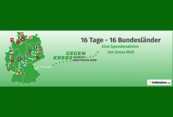 Jonas Moll fährt in 16 Tagen durch 16 Bundesländer und sammelt Spenden, die krebsbetroffenen Familien und krebskranken Kindern zugutekommen. Die Spenden gehen u.a. an die 16 Land...